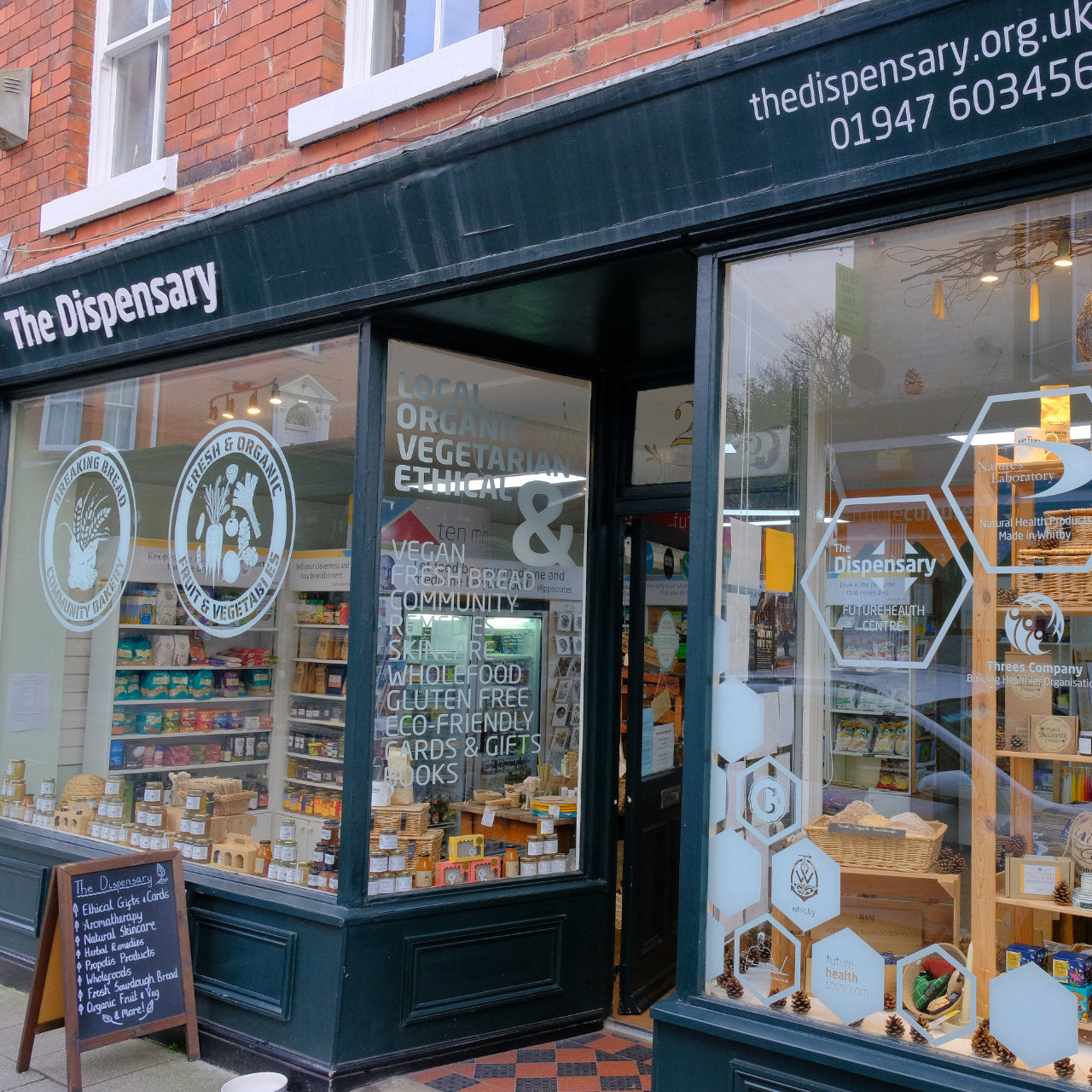 The Dispensary is part of Common Cause, a not-for-profit Community Interest Company. Our physical shop on Skinner Street offers a wide range of organic and vegan products, including fresh fruit and vegetables and sourdough bread, health supplements, natural skin and hair care, plastic free household items, refillables, handmade gifts by local makers and more. We also have an inhouse library and organise health and wellbeing events and workshops. Our online shop means you don't have to travel to Whitby to shop with us.