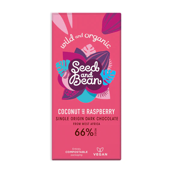 Seed & Bean Coconut & Raspberry Extra Dark Chocolate 75g Bar (66% Cocoa)