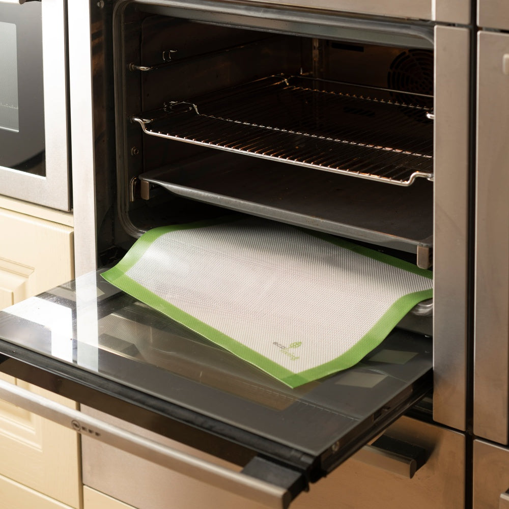 A reusable non-stick baking mat. Say goodbye to disposable liners. This oven mat lines your baking sheets and trays to make them non-stick - old trays will work like new! Non-stick, no need to add fatty oils for a healthy way to bake. This versatile mat can also be used as an anti-slip work surface.