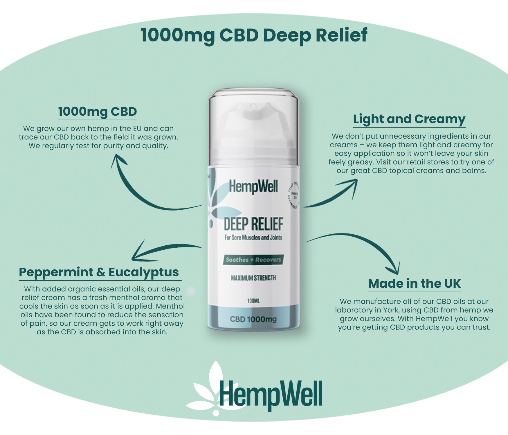 HempWell “Deep Relief” Cooling Muscle and Joint Cream 1000mg CBD Pain Cream | 100ml