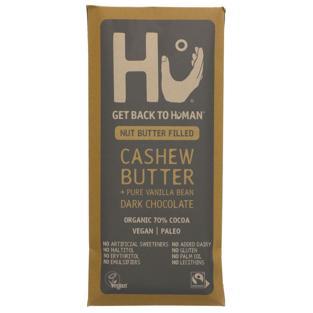 Hu unite unbeatable taste with unmatched ingredient simplicity. They go beyond what's easy and expected to ensure that their products and practices are ethical and put both humanity and the human body first. They're on a mission to help people Get Back to Human . Hu Dark Chocolate Bars are proudly Paleo, Vegan, Organic, and Fairtrade. With no artificial sweeteners, no maltitol, no erythritol, no emulsifiers, no added dairy, no gluten, no palm oil, & no lecithins. Hu help people get back to Human.