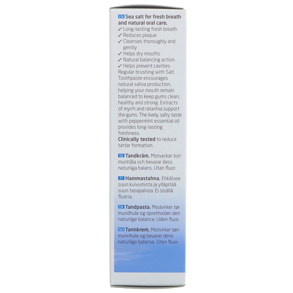 Sea salt has a mouth-watering effect - literally! Weleda formulated this toothpaste to let saliva do its natural work, gently flushing your whole mouth clean. Natural extracts of ratanhia root, myrrh and chestnut bark tone the gums, while gently abrasive particles clean the teeth to prevent plaque and tartar building up, protecting against the formation of cavities. The zesty, salty taste is further freshened with essential oil of peppermint, for tingly-fresh tooth-cleaning, without fluorides. Suitable for vegetarians. Contains Lactose.